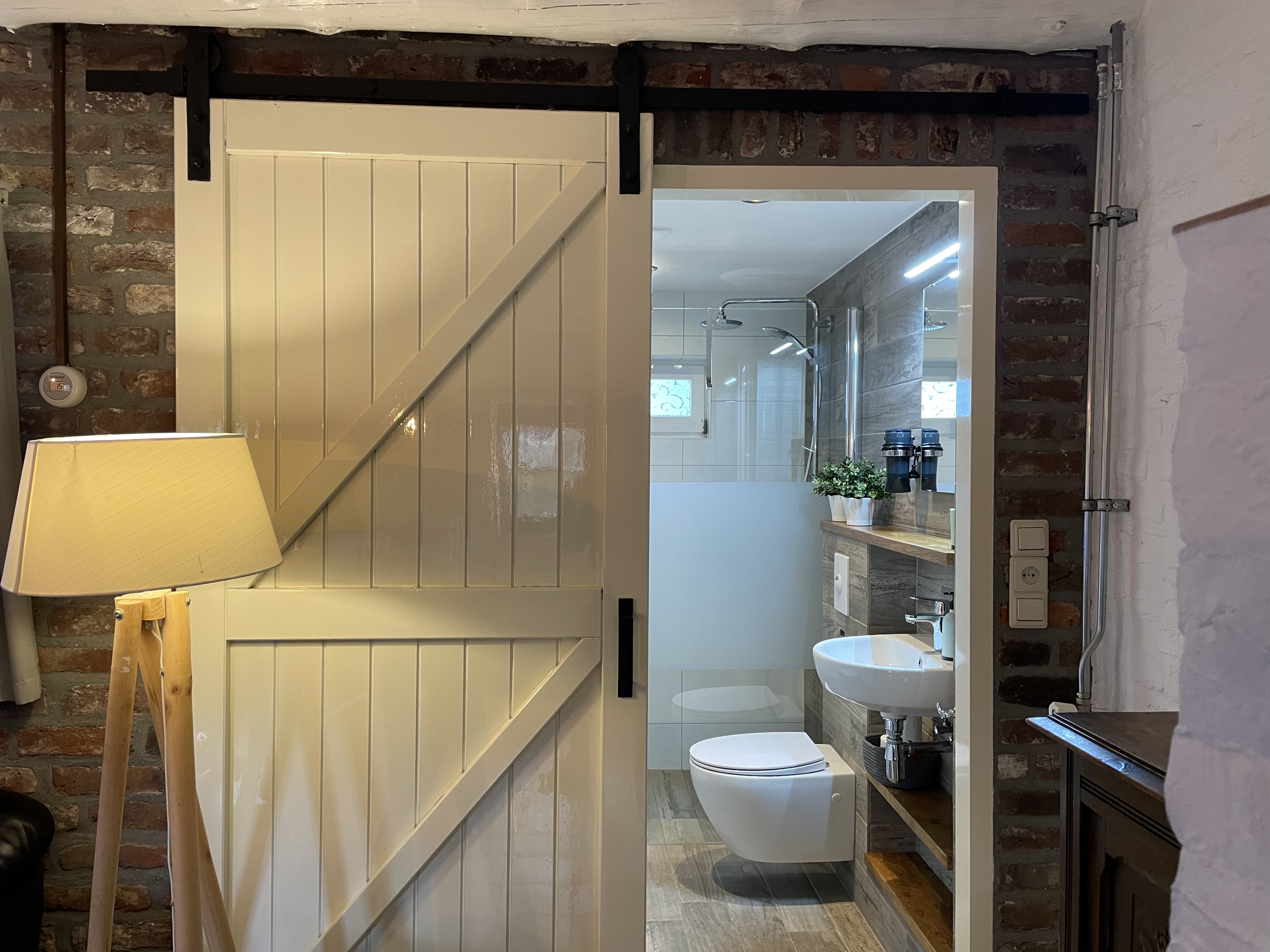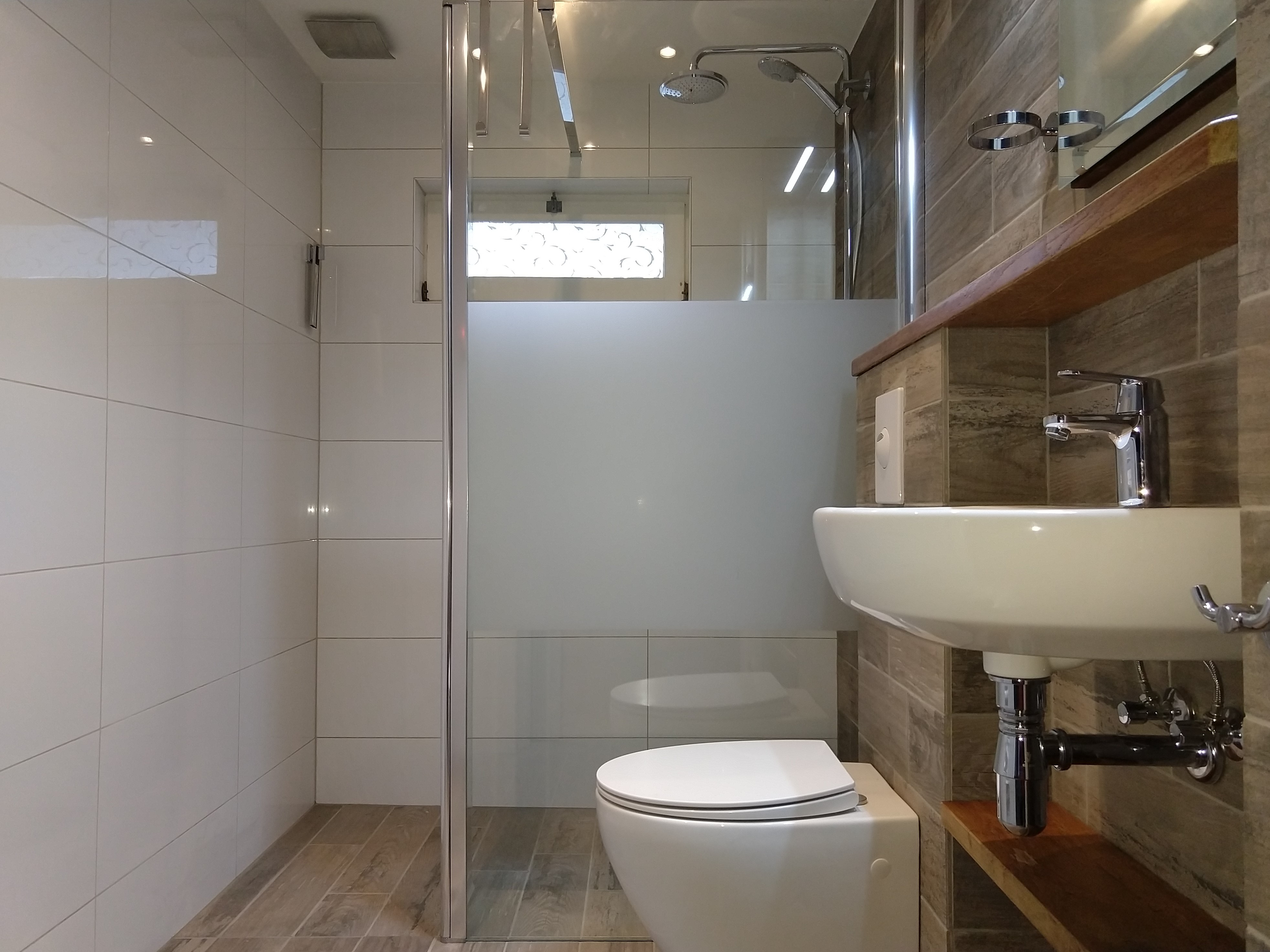 - Badkamer met inloop regen douche en toilet.